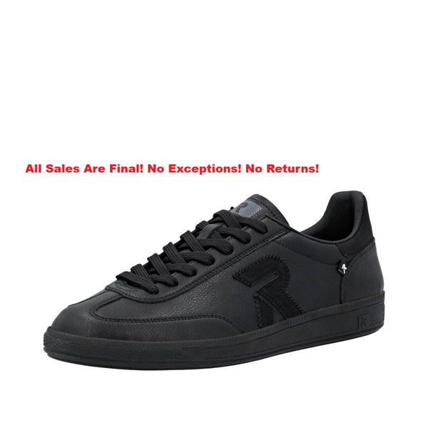 Crafted from premium smooth leather, these Rieker Black low-top sneakers deliver exceptional comfort with every stride. The specialized insole features arch support that absorbs impact while returning energy to your step. Experience confident footing on all terrains with the durable TR outsole that resists wear. The lightweight micro velour and synthetic leather lining complete these versatile men's shoes for all-day wearability.